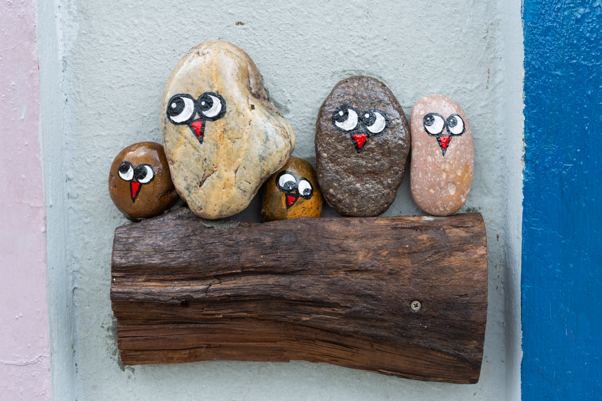 Egal, welche Form deine Steine haben: Mit einem spitzen Schnabel und runden Augen verwandelst du sie flugs in drollige Vögel. Du kannst eine ganze Familie gestalten!