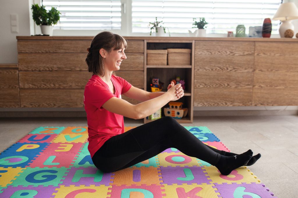 Wann trainieren – am besten in den Tagesablauf integrieren. Gerade als (mehrfache) Mama ist es nicht immer einfach, Zeit für rückbildungsorientiertes Training zu finden. Aus diesem Grund ist es umso wichtiger, die Tipps im Alltag zu beherzigen und auf eine bewusste Grundspannung, z.B. beim Heben und Tragen zu achten. Die folgenden Übungen erfordern lediglich eine weiche Unterlage und können neben bzw. mit Kind absolviert werden.