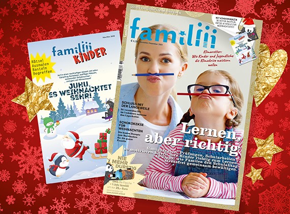 Alles für den Lockdown: Die neue Ausgabe bietet vielerlei Infos und Themen rund um Gesundheit („Influenza oder Corona?“), Erziehung („Streiten in Lockdown-Zeiten“), Freizeitgestaltung („Schoko-Weihnacht“, „Stoppt die Langeweile“, „Lockdown-Bibliothek“) und Medien („Soziale Medien und Kinder“).