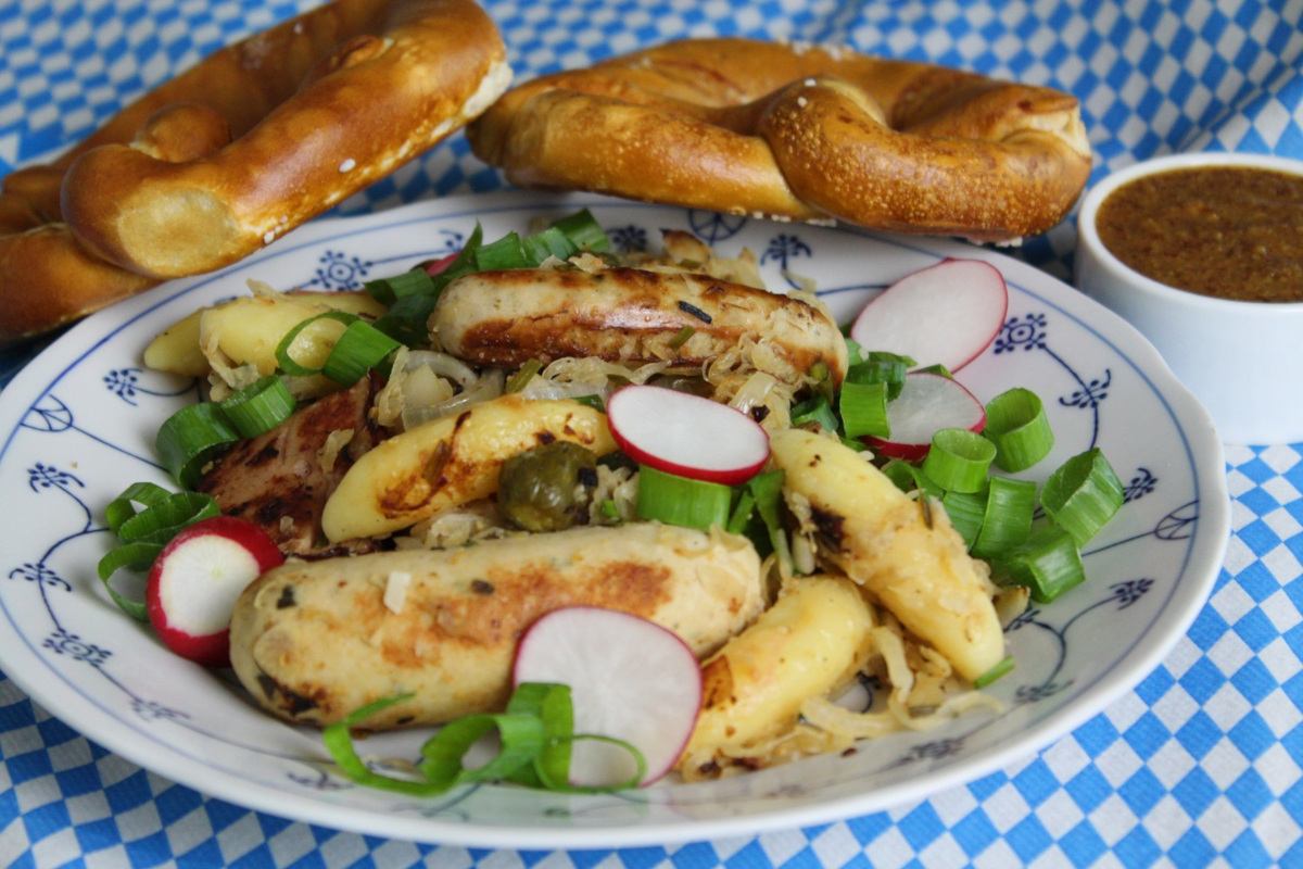 Kein Bock auf einen Asia-Wok? Wie wäre es dann mal mit einer bayerischen Variante? In der sich Weißwurst, Nürnberger Rostbratwürste, Sauerkraut, Leberkäse und Schupfnudeln tummeln? Für kulinarisch sehr konservative Bayern natürlich fast schon Gotteslästerung – für alle anderen, die dieses Gericht nachkochen ein absoluter Gaumenschmaus. Und: Wer das Rezept unterhalb als nicht das Seine empfindet: Es spricht nichts dagegen einen Hessen-, Sachsen oder Saarland Wok zu kreieren!