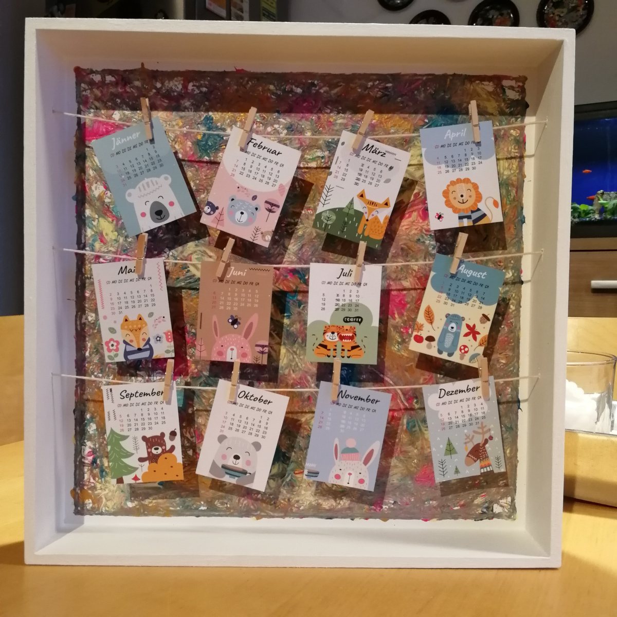 familiii-Leserin Stephanie H. hat gemeinsam mit ihrer Tochter den Rahmen für den Jahreskalender gefertigt:
