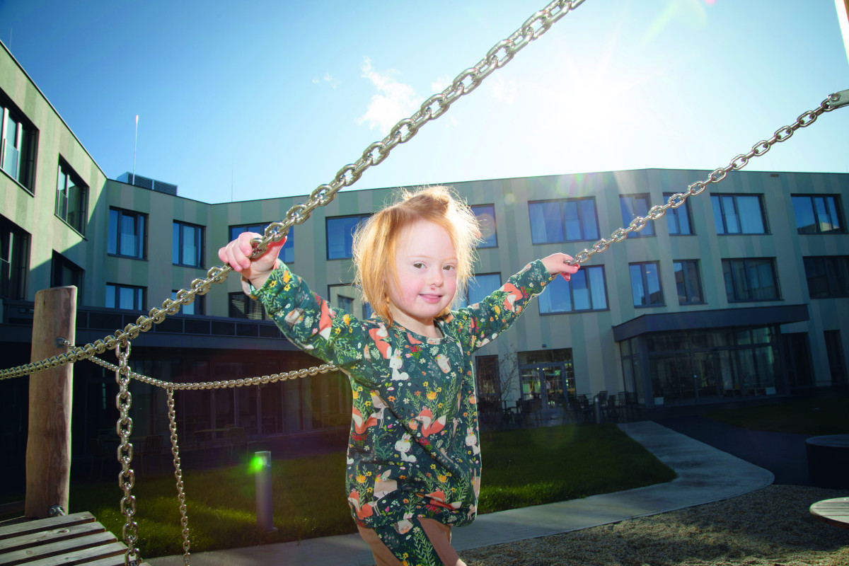 Voller Begeisterung klettert Justina die Holzstufen nach oben und rutscht dann die kleine Rampe herunter. Immer und immer wieder läuft die Dreieinhalbjährige zurück, mit jeder Wiederholung lacht sie mehr und strahlt vor Glück. Für die meisten Kinder wäre dies wohl keine besondere Sache, doch für Justina ist die Eroberung der Holzrutsche ein großer Schritt, denn Justine wurde mit Trisomie 21 und einem Loch im Herzen geboren.