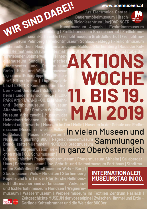 In Oberösterreich ist es eine ganze Aktionswoche, die sich mit dem Internationalen Museumstag beschäftigt. Sie läuft noch bis 19. Mai 2019.