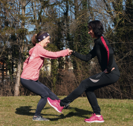 Im Alltagsstress Zeit für regelmäßiges Training zu finden ist oft nicht einfach. Vieles soll unter einen Hut gebracht werden und auch die Pflege von Freundschaften soll nicht zu kurz kommen. Vielleicht geht es Ihrer Freundin oder Ihrem Freund ja genauso? Wie wäre es statt dem nächsten Kaffee-Treff ein gemeinsames Workout zu vereinbaren? Oder verabreden Sie sich am Nachmittag am Spielplatz. Während die Kinder sich dort austoben, können Sie die Zeit für eine kurze Trainingseinheit zu zweit nutzen. Gute Gründe für ein Partner*innen-Workout gibt es genug: >> Zusammen macht auch eine herausfordernde Trainings-Session gleich mehr Spaß. Durch das gegenseitige Motivieren fällt Ihnen das Durchhalten leichter und Sie geben nicht so schnell auf wie beim Solo-Workout. >> Fixe Verabredungen und gemeinsame Trainingsziele helfen Ihnen längerfristig dranzubleiben und sorgen dafür, dass Sie sich eher regelmäßig Zeit für Ihre sportlichen Einheiten nehmen. >> Ihr Trainingsbuddy hat immer ein Auge auf Sie. Vielleicht fällt Ihrem Gegenüber auf, wenn Sie eine Übung nicht korrekt ausführen, wenn z.B. der Rücken rund wird oder Sie schief stehen? Das kann dabei helfen, Verletzungen vorzubeugen. >> Sie benötigen für das Workout keine Ausrüstung. Ihr Trainingspartner fungiert als „Trainingsgerät“, Widerstand oder Stützhilfe. >> Beim Partner-Training müssen Sie sich auf einander abstimmen. So arbeiten sie dabei nicht nur an Ihrer Kraft, Ausdauer und Mobilität, sondern ganz nebenbei auch noch an Ihrer Koordination und Reaktionsfähigkeit. Worauf Sie beim Training zu zweit achten sollten: >> Natürlich ist es toll, wenn man sich gegenseitig motiviert. Dennoch sollten Sie dabei immer Ihre eigenen Grenzen erkennen und akzeptieren. Nehmen Sie Rücksicht aufeinander und orientieren Sie sich beim Üben gegebenenfalls an der weniger trainierten Person. Die fittere Hälfte des Trainingsduos kann ja vielleicht noch ein paar Wiederholungen dranhängen, während die andere die Pause aktiv nutzt und schon mal auslockert oder am Platz marschiert. >> Denken Sie daran, sich vor den Übungen aufzuwärmen. 5-10 Minuten zügiges Gehen und idealerweise ein paar Mobilisationsübungen wie Schulter- oder Hüftkreisen bereiten Sie auf das Workout vor. >> Und vergessen Sie nach dem Workout nicht, sich gegenseitig auf die Schultern zu klopfen – für die gelungene Sporteinheit, aber auch für alle großen und kleinen Dinge, die Sie im Alltag so schaffen. Und vielleicht spüren Sie ja auch, wie Sie sich nach der gemeinsamen sportlichen Zeit ein bisschen glücklicher oder entspannter fühlen als zuvor?