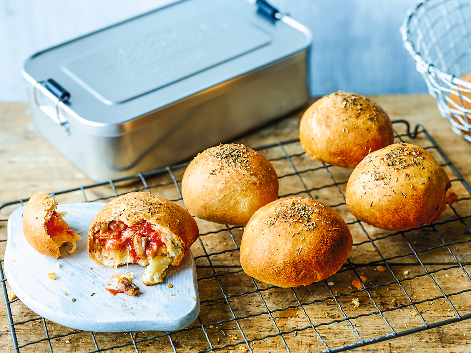 Viele Inspirationen für praktische Snacks finden sich auch in „Lunch to go“ – für ihr Kochbuch hat die Ernährungswissenschaftlerin Inga Pfannebecker nämlich Gerichte kreiert, die sich nicht nur gut transportieren lassen, sondern mit wichtigen Nährstoffen und Vitaminen auch optimal die Denkleistung unterstützen. So lassen sich die Pizzabrötchen besonders gut vorbereiten, die Mais-Fritters sorgen für Abwechslung und sind praktisch für unterwegs und die Rohkostbox mit cremigem Erdnusshummus verbindet beinah alle gute Eigenschaften einer Zwischenmahlzeit. Ideal ist dabei nämlich eine Kombination aus langsam verdaulichen Kohlenhydraten (z. B. Vollkorngetreide, Gemüse, Hülsenfrüchte), nicht zu fettem Eiweiß und wenigen, dafür hochwertigen Fetten (z. B. Nüsse, Samen, Avocado). Besonders wichtig ist die Schuljause für Kinder, die beim Frühstück meist noch keinen Appetit haben – denn zahlreiche Studien belegen, dass die Mahlzeit am Morgen sowohl körperlich als auch geistig fitter macht. Ein Startvorteil also, der auch noch schmeckt.