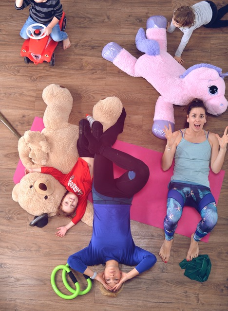„Yana und ich sind es gewöhnt intensiv zu trainieren und das klappt am besten ungestört“, so Katrin, „außerdem bekomme ich bei einer Trainingseinheit auch immer wieder meinen Kopf vom Mama-Alltag frei ;-).“ Und sie fügt hinzu: „Für mich ist es wichtig, dass ich eine Stunde habe, in der ich mich auf mich konzentrieren kann. Bei unserem Angebot können sich die Eltern „auspowern“ und die Kinder haben nebenan Spaß und werden motorisch gefördert. Somit haben während dieser Stunde alle eine gute Zeit.“