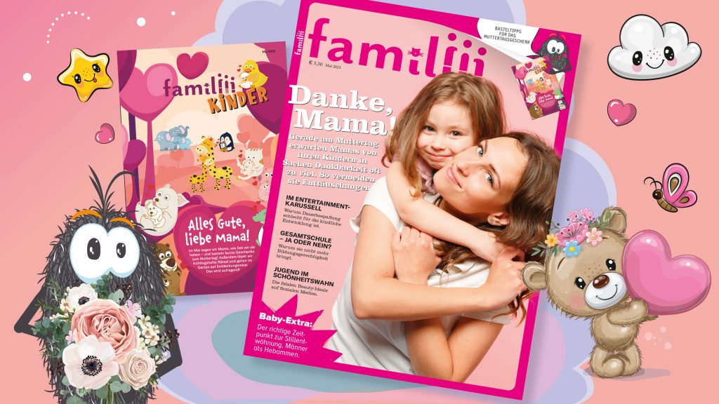 Neben Themen wie Sonnenschutz bei Kindern, oder Wandern mit der Familie bietet die neue Maiausgabe von „familiii“ ein spannendes Baby – Extra und ein Muttertags – Special!