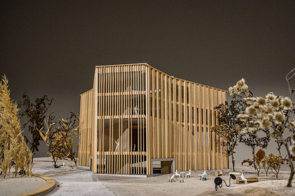 Michael Salvi von Schenker Salvi Weber Architekten ZT GmbH sprach von einer einzigartigen Aufgabenstellung, einerseits radikal aus der Kinderperspektive zu denken, andererseits aber einen ernstgemeinten Kunstbegriff zu vermitteln: „Der Holzbau, der in den Park nur punktuell eingreift und den Baumbestand belässt, wird auf vier Ebenen neben Ausstellungsräumen, Laborflächen und Büros auch sowohl Indoor-als auch Outdoor-Spielplätze und ein Café beinhalten“.