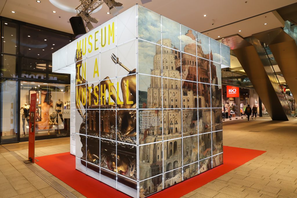 Für drei Wochen ist eines der bedeutendsten Museen der Welt zu Gast im MURPARK in Graz: Das Kunsthistorische Museum bietet von Donnerstag, 2. März bis Montag, 27. März einen Einblick in seine Welt. Mit einem begehbaren Miniatur-Museum, dem „Museum in a Nutshell“, soll das Kunstinteresse der Besuchenden im Grazer MURPARK geweckt werden. Von 2. bis 4. März begleiten professionelle Kunstvermittler:innen durch die kostenlose Ausstellung.