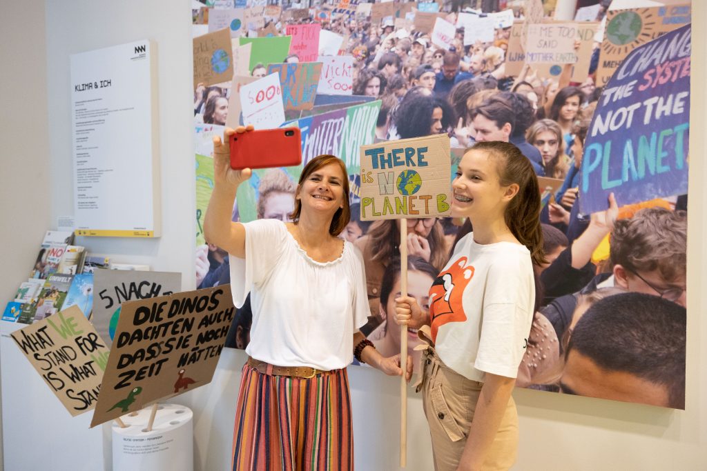 Die Sonderausstellung „Klima & Ich“ erklärt nicht nur, was der Klimawandel ist, welche Ursachen er hat und welche Folgen für Umwelt, Menschen und Wirtschaft zu erwarten sind. Sie lädt dazu ein, selbst aktiv zu werden. Die anfangs rotglühende Erdkugel im Eingangsbereich wurde dank der zahlreichen Vorsatzkarten der Besucher*innen immer grüner. Sie symbolisiert den täglichen CO2-Verbrauch von 30 Kilogramm pro Person und Tag, der auf drei Kilo reduziert werden muss, um die Klimaziele zu erreichen.