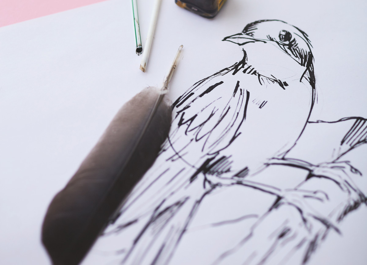 Alternativ kannst du auch eine große Vogelfeder, zum Beispiel von einem Schwan, zu einem Zeichenwerkzeug umgestalten. So wurden schon in früheren Zeiten Schreibfedern gemacht.