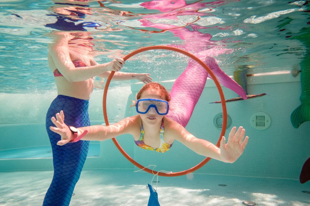 Beim Meerjungfrauen-Schwimmen geht der Traum von Mädchen, wie Arielle mit glitzernder Flosse ins Wasser abzutauchen, in Erfüllung. familiii zu Besuch bei den Wassernixen.