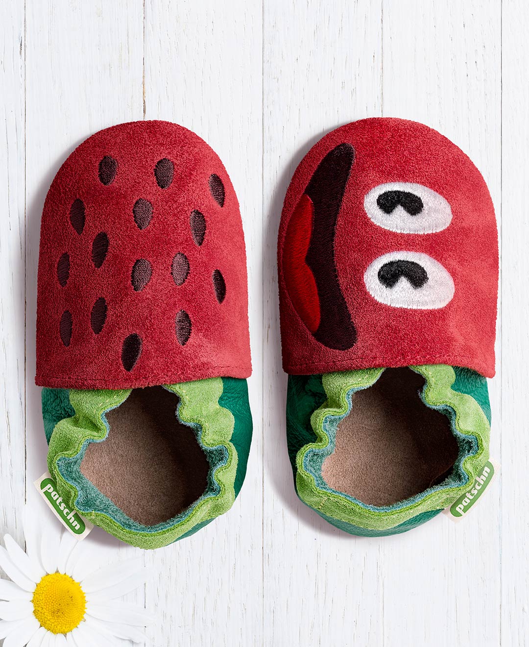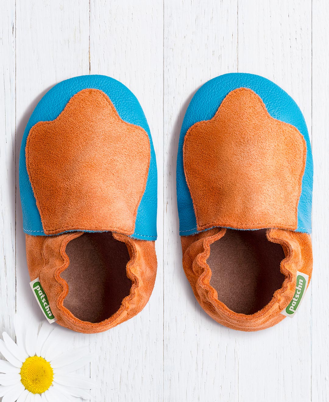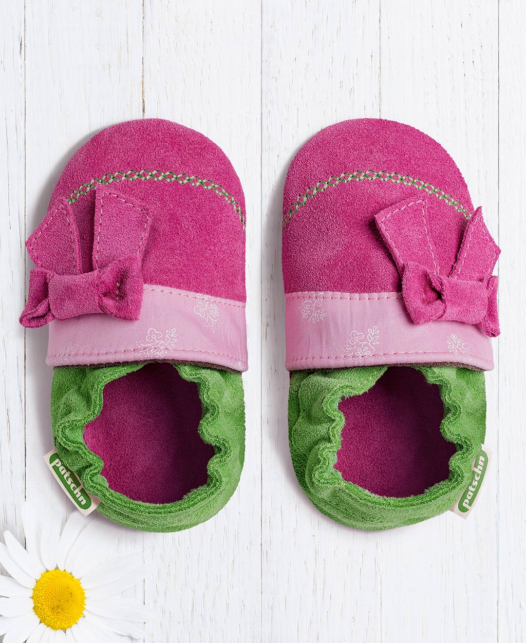 Das Wiener Atelierwerk „patschn“ verwendet für die süßen Kinderpatscherl nur 100% echtes italienisches Leder sowie Garn, Textilien und Baumwoll-Labels aus Österreich und Deutschland. Sie sind atmungsaktiv, rutschfest und unterstützen eine gesunde Entwicklung der Füße.