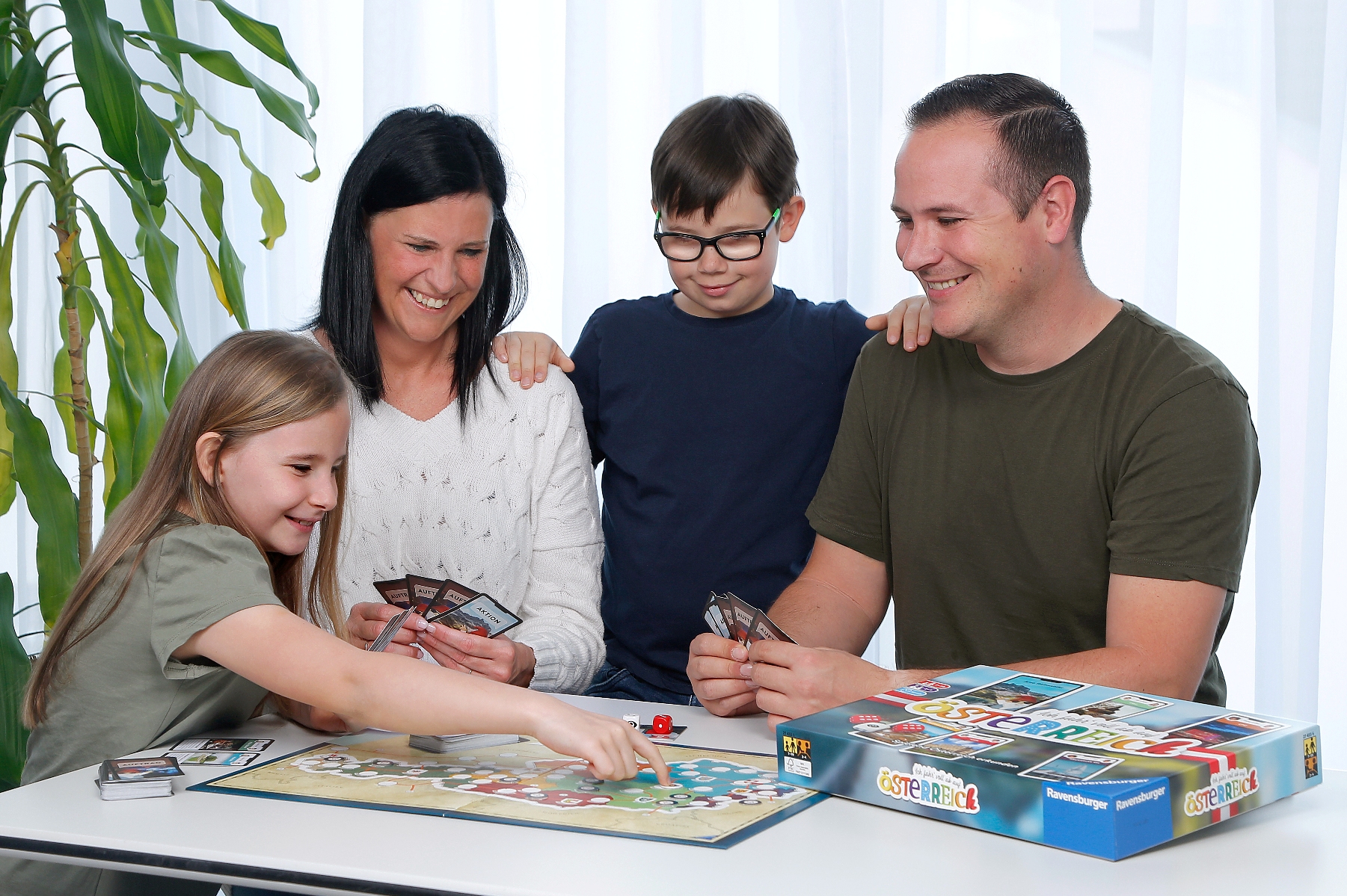 Jedes der fünf Teams hat dabei seine Lieblingsorte ausgewählt, die auf den Auftragskarten für die Spieler abgebildet sind: Während es Alex und Anna auf die Riegersburg und zum Granattor am Millstätter See zieht, wollen Sophia und Simon Schloss Esterhazy besichtigen, Lukas und Lisa das Inatura Museum in Dornbirn erkunden oder Emma und Elias zum Stand-Up-Paddling nach Zell am See.