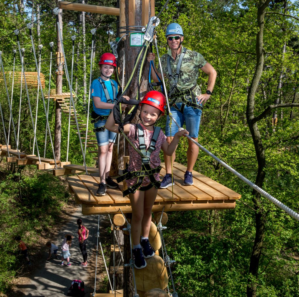 Der Waldseilpark Kahlenberg befindet sich auf Wiens beliebten Hausberg, dem Kahlenberg. In einer Höhe von 1 bis 20 m werden verschiedene Hindernisse, die sich zwischen lebenden Bäumen befinden, überwunden. Ohne besondere Ansprüche an die eigene Fitness oder körperliche Verfassung wird so an insgesamt 17 Kletter‐Stationen, welche sich mit einer Gesamtlänge von 1,8 km über eine Fläche von 30.000 m2 erstrecken, für alle das Passende geboten: für Groß und Klein, für Anfänger und Fortgeschrittene und natürlich auch für Profis! Es bleibt jedem frei, zu entscheiden, wie hoch, wie weit und wie lange geklettert werden soll – und ganz nebenbei kann die grandiose Aussicht über die Wiener Skyline genossen werden, oder man fliegt mit unseren Flying Fox‐Anlagen durch die Baumwipfel!