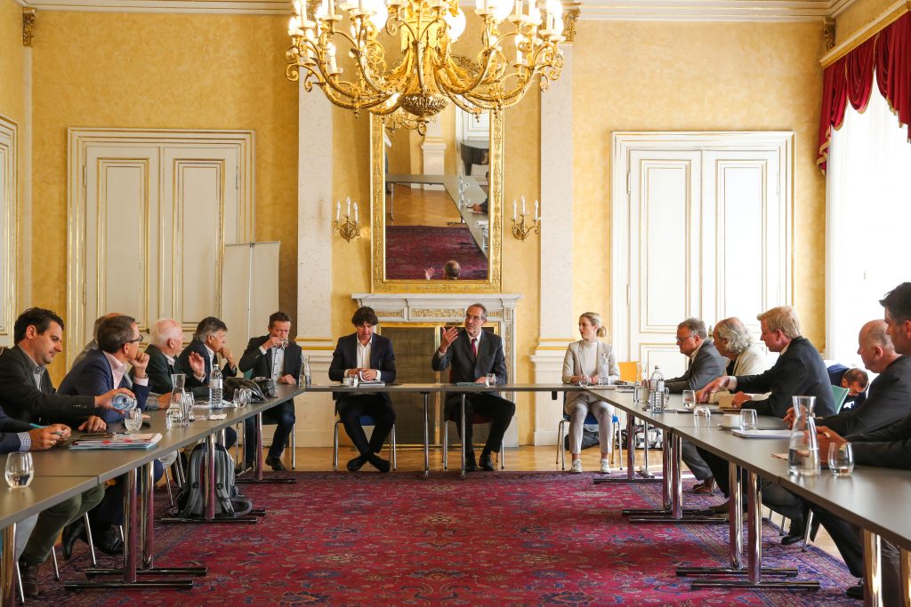 © GEPA pictures/Michael Meindl – Bewegungs-Gipfel im Bildungsministerium, 1. Reihe: Peter Kleinmann, Peter Korecky (ASKÖ), PräsidentHans Niessl (BSO), PräsidentPeter Schröcksnadel (ÖSV), Siegfried Robatscher (ASVÖ) und Christoph Zarits(ÖVP), 2. Reihe: Gerd Bischofter (BSO), Peter McDonald (Union), Unterrichtsminister Heinz Fassmann, Generalsekretär Peter Mennel (ÖOC) und Philip Newald (motion4kids).