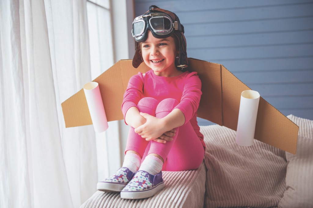 Einfache Idee, große Wirkung: Mit Flügeln aus Karton wird man schnell zur mutigen Flugkapitänin!