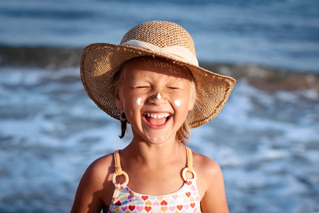 Sommer – das heißt Freiheit, Sand und Freibadwiese. Wasser, Garten, Abenteuer. Es ist die Zeit der Eisfinger, der langen Tage, der schmutzigen Füße und – ja, genau, des Geruchs von Sonnencreme. Denn gründliches Eincremen an Sonnentagen ist Pflicht, schließlich ist das der sicherste und effektivste Weg, den Sommer wirklich unbeschwert genießen zu können. „Geht es um den Sonnenschutz, sollten Kinder immer wie ein rohes Ei behandelt werden“, weiß auch Verena Beck. Sie ist Hautärztin und sieht in ihrer Wiener Praxis tagtäglich, was passiert, wenn Kinder der Sonnenstrahlung ungeschützt ausgesetzt werden: „Das Ergebnis sind langfristige Hautschäden. Und es ist einfach so, dass es einen Zusammenhang zwischen der Häufigkeit von Sonnenbränden in der Kindheit und der Wahrscheinlichkeit gibt, an Hautkrebs zu erkranken.“ Die Haut vergisst nie, heißt es, und zahlreiche Studien belegen, dass das Hautkrebsrisiko mit jedem Sonnenbrand steigt. Aber wie schützt man sein Kind nun richtig? Wir bringen Licht ins Empfehlungsdickicht.