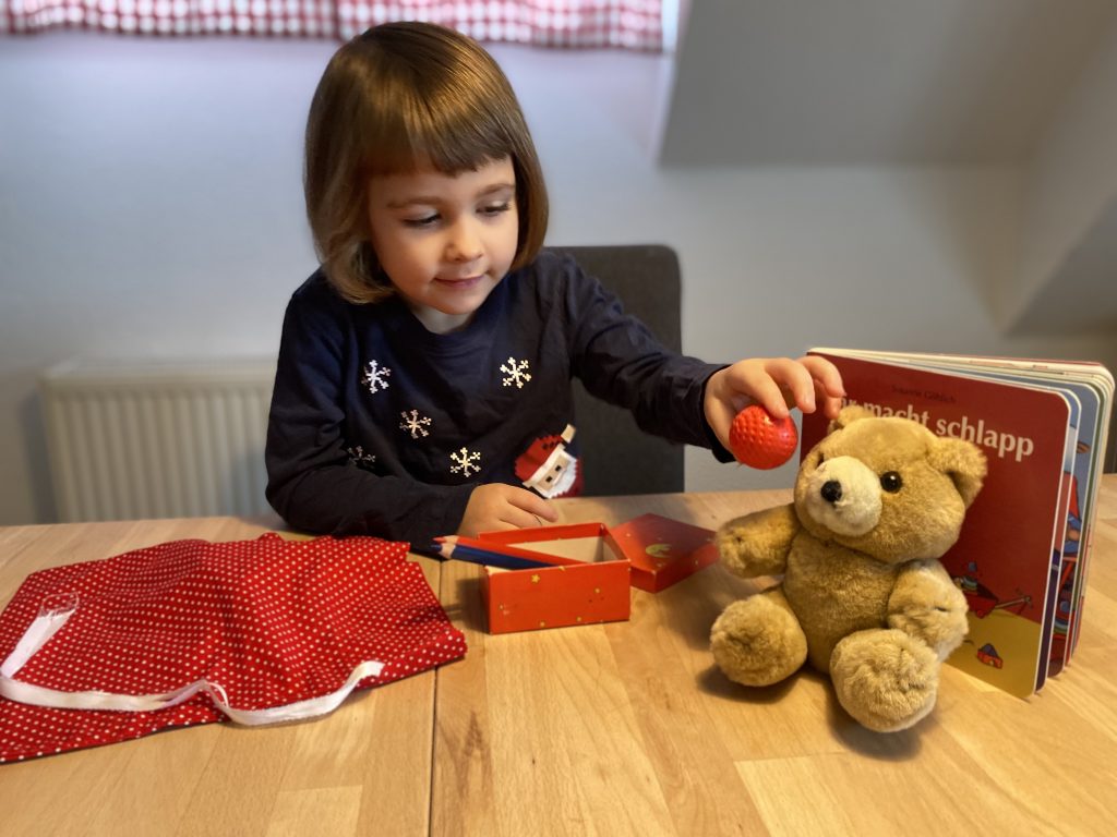 Grammatik ist essenziell für unsere sprachliche Verständigung. Warum? Einzelne Wörter tragen zwar die Bedeutung des Satzes, aber erst die Grammatik setzt die Wörter in Beziehung zueinander und an ihren richtigen Platz. Bei der Aussage „Der Hund der Hase schubsen“, in der nur die Grundform der Wörter verwendet wird, würden wir wahrscheinlich denken, der Hund schubst den Hasen. Erst wenn wir grammatikalische Regeln anwenden und aus denselben Wörtern den Satz „Den Hund schubst der Hase“ bilden, wird klar, genau das Gegenteil ist der Fall. Kinder müssen diese Regeln erst lernen und meistern dies, ohne dass sie ihnen jemand explizit erklärt. „Bis zu ihrem dritten Geburtstag können Kinder zwar schon einfachere Regeln anwenden, aber erst ab dem vierten Lebensjahr fangen sie an, auch kompliziertere Sätze zu verstehen und zu produzieren. Mit unserer Studie wollten wir herausfinden, welche Reifungsprozesse im Gehirn mit diesem Meilenstein in der Sprachentwicklung einhergehen.“, sagt Cheslie C. Klein vom Max-Planck-Institut für Kognitions- und Neurowissenschaften in Leipzig. Gemeinsam mit ihren KollegInnen aus der Abteilung Neuropsychologie und der Forschungsgruppe „Meilensteine früher kognitiver Entwicklung“ hat sie den grammatikalischen Sprachstand von Kindern zwischen drei und vier Jahren sowohl beim Verstehen als auch beim Sprechen von Sätzen mit Hilfe von unterschiedlichen Sprachspielen untersucht.