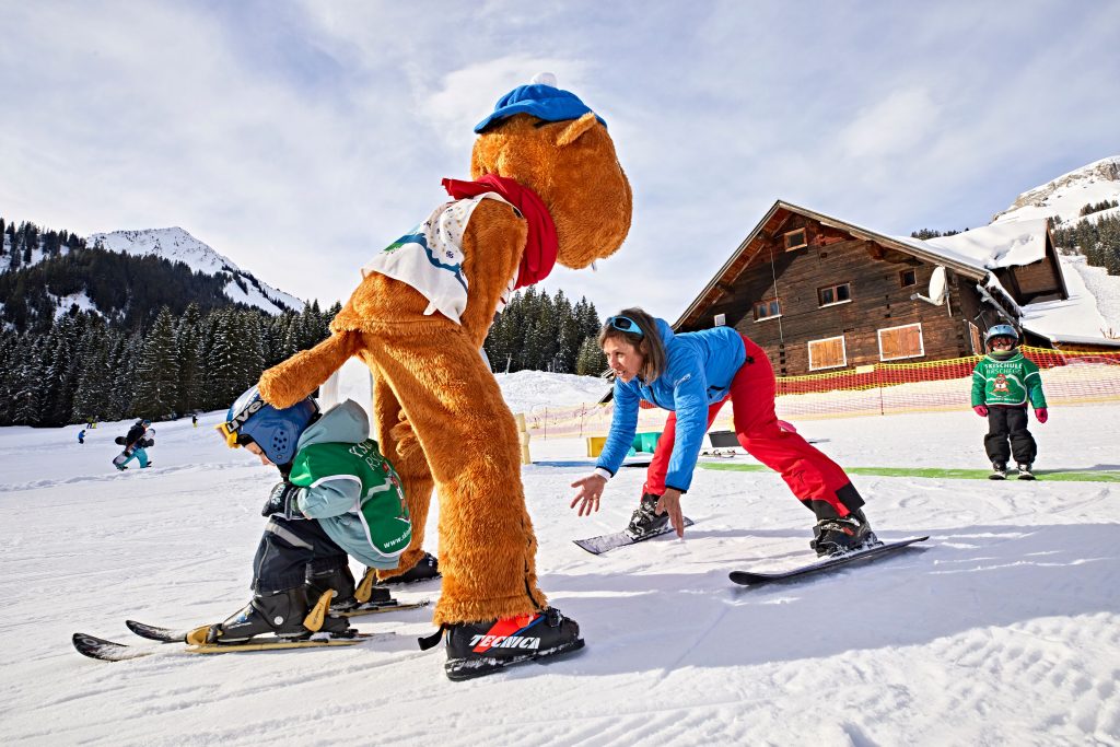 Mit ein paar Tricks stehen die Kleinen rasch auf den Schi und fahren selbstsicher die Piste hinunter!