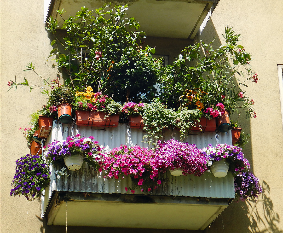Dieser farbenfrohe Balkon in Währing ist mit seinen prächtigen Blumenkisterln ein richtiger Hingucker und sorgt für gute Laune beim Vorbeispazieren.