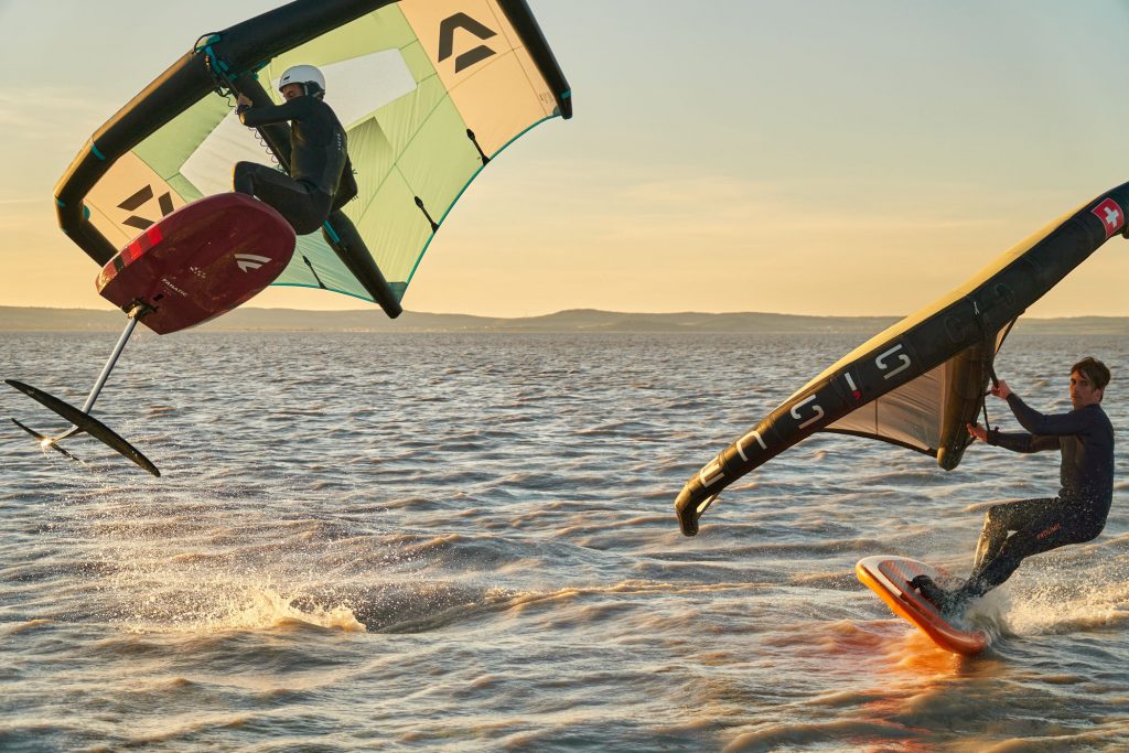 Beim Wingsurfen schweben die SurferInnen circa 50 Zentimeter über der Wasseroberfläche. Für den Auftrieb sorgt der auf der Unterseite des Boards montierte Hydrofoil, der wie ein Flügel funktioniert und das Brett samt Rider aus dem Wasser hebt. Der „Wing“, eine Art Segel mit Luftkammern, dient als Mittel zum Vortrieb und ermöglicht auch den nötigen „Lift“. „Fast fühlt man sich wie auf einem schwebenden Teppich“, so beschreibt Max Matissek – Lokalmatador und einer der erfolgreichsten österreichischen Freestyler im Windsurfen – diesen neuen Sport kürzlich in einem Interview.