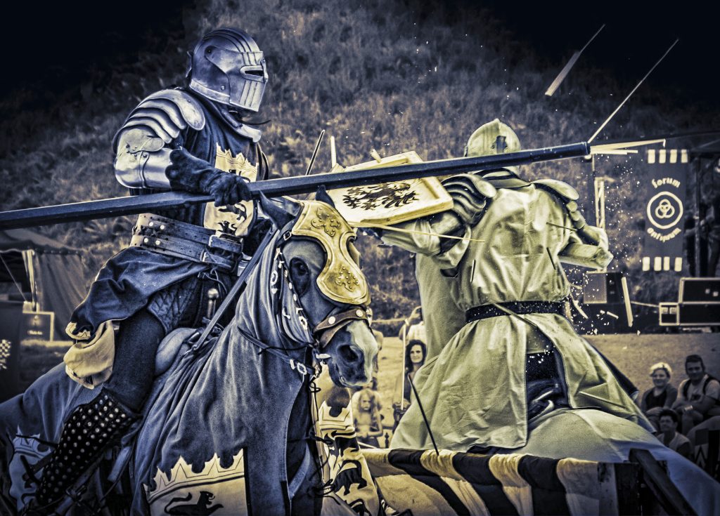 Spannender Tjost zu Pferde beim Ritterturnier