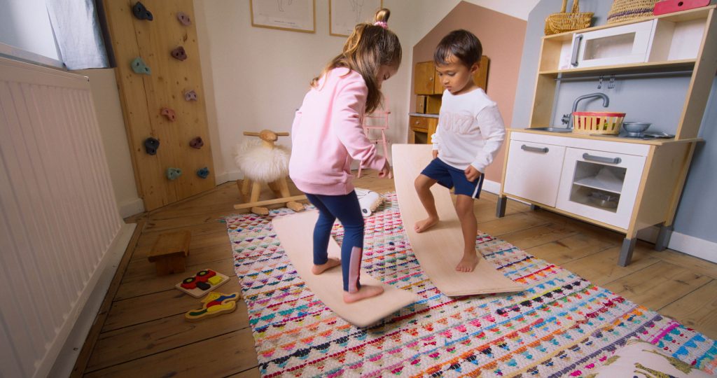 Gerade im Kindesalter ist die Lernfähigkeit im Bereich der koordinativen Fähigkeiten besonders groß. Dazu zählen vor allem Gleichgewichts- und Orientierungsfähigkeit, Bewegungen mit hoher Präzision ausführen zu können sowie kurze Reaktionszeiten auf Reize. „Ein regelmäßiges Training der Koordination für Kinder ist wichtig und lässt sich in Form von verschiedenen Gleichgewichtsübungen leicht umsetzen. Eine einfache Übung, die bei den meisten Kindern beliebt ist: Balancieren! Hier können Geräte wie ein Balance Board, ein Schwebebalken oder eine Slackline den nötigen Anreiz schaffen. Das ist aber kein Muss: Als Alternative kann beispielsweise auch ein Klebestreifen am Boden befestigt werden, der als Balancierstreifen genutzt wird“, so die Sportexpertin.